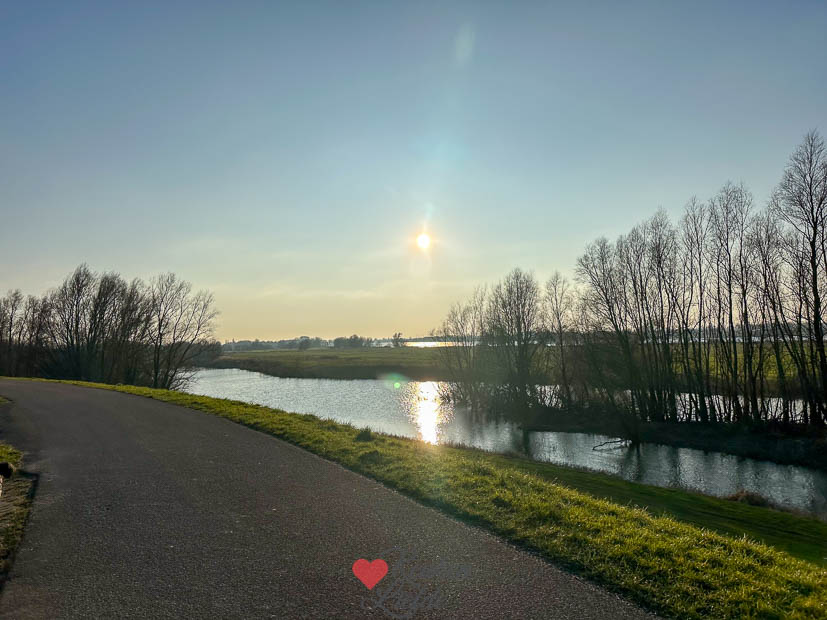 We slapen lekker uit en rommelen de rest van de dag weer een beetje aan. Eind van de middag gaat Johan boodschappen doen voor het avondeten en ik ga wandelen met Nacho. Op de dijk worden we ingehaald door de tiener en een vriendin die een rondje hardlopen. Het was waterkoud en het waaide maar het zonnetje scheen en ik genoot.