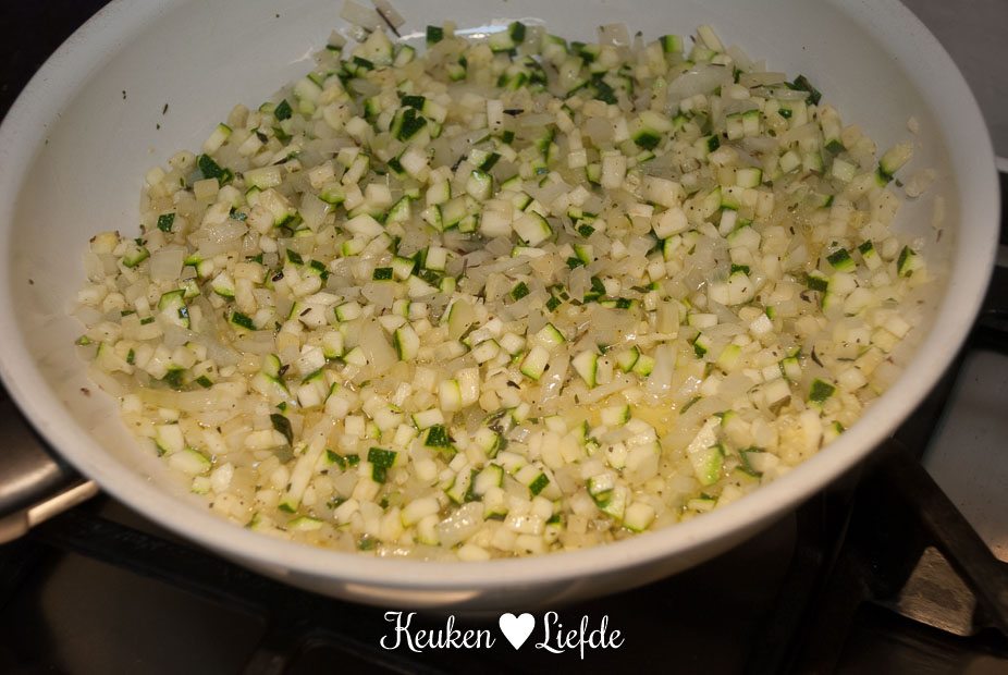 - 1/2 courgette, brunoise gesneden (in kleine dobbelsteentjes)