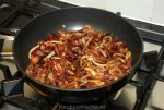Verhit een koekenpan met wat olijfolie en bak de uien op laag vuur totdat ze zacht zijn. Voeg dan de suiker toe en bak nog een paar minuten verder totdat de uien zijn gekarameliseerd.