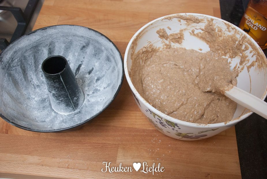 Verwarm de oven voor op 180 graden. Vet de bakvorm in met boter en bestuif met bloem. Klop het overtollige bloem uit de vorm.