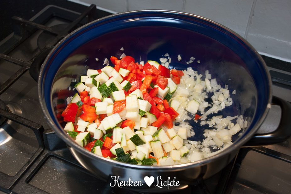 - 1 kleine/middelgrote courgette, in kleine blokjes gesneden