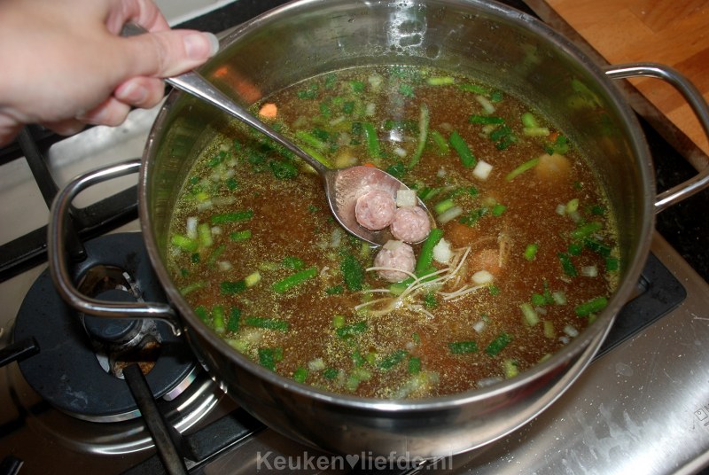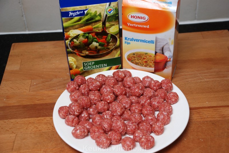 Je kunt de gehaktballetjes ook eerst aanbakken in wat boter om ze wat kleur te geven en daarna pas toevoegen aan de soep.