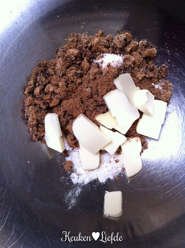 Voor de chocoladekoekkruimels