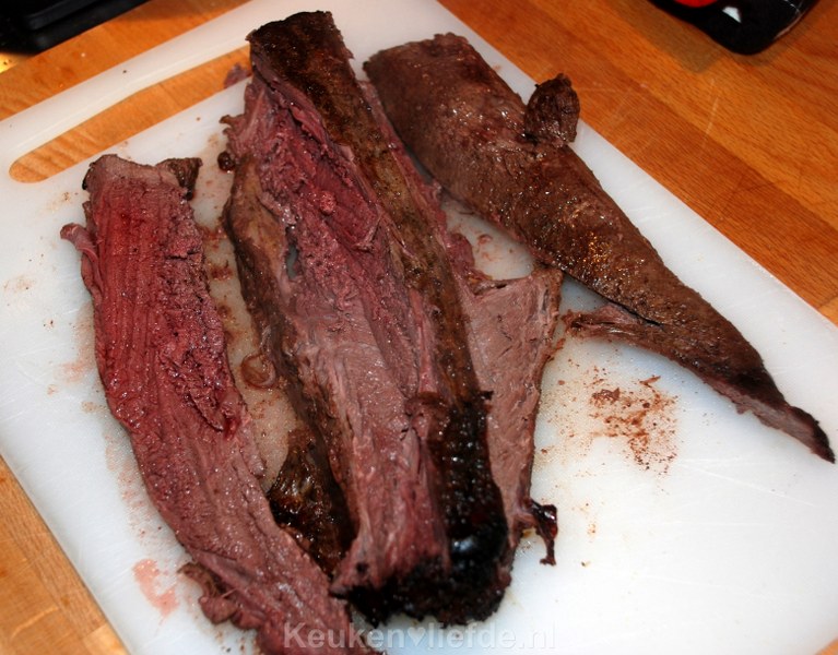 Smaak was prima, maar de haas was erg droog. Niet meer rosé dus.