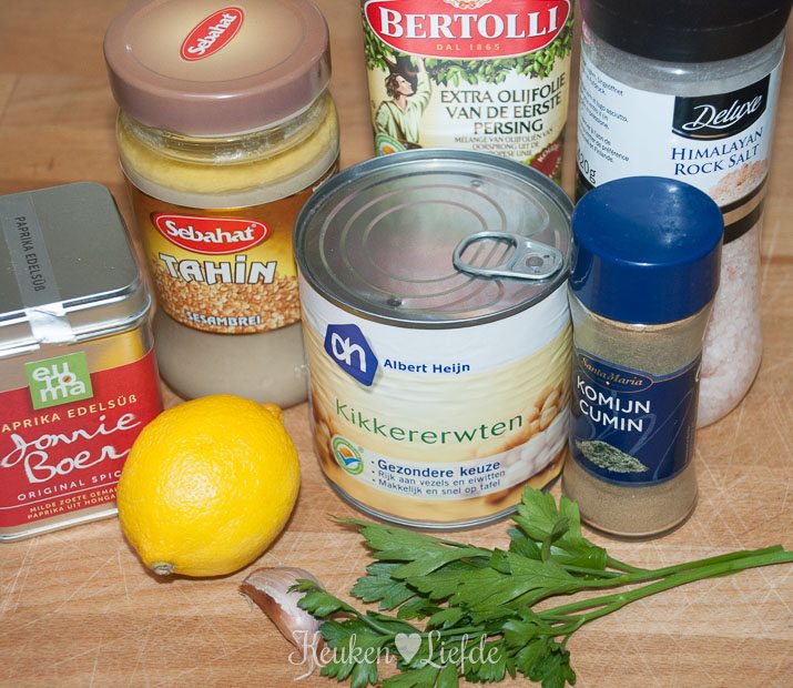 *Binnenkort ga ik ook eens hummus maken met gedroogde kikkererwten, die eerst een nacht geweekt en vervolgens gekookt zijn. Zo schijnt de hummus nóg lekkerder te worden.