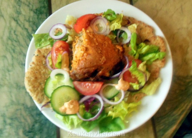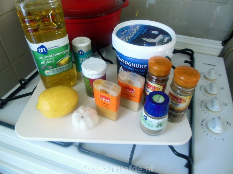 Lekker met naanbrood en een frisse groene salade. Ik maak altijd een beetje meer marinade, zet het apart en dat een beetje druppelen over de salade.