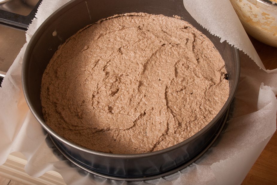 ronde springvorm van 30 cm doorsnede, mixer, rasp, boter om in te vetten, bakpapier