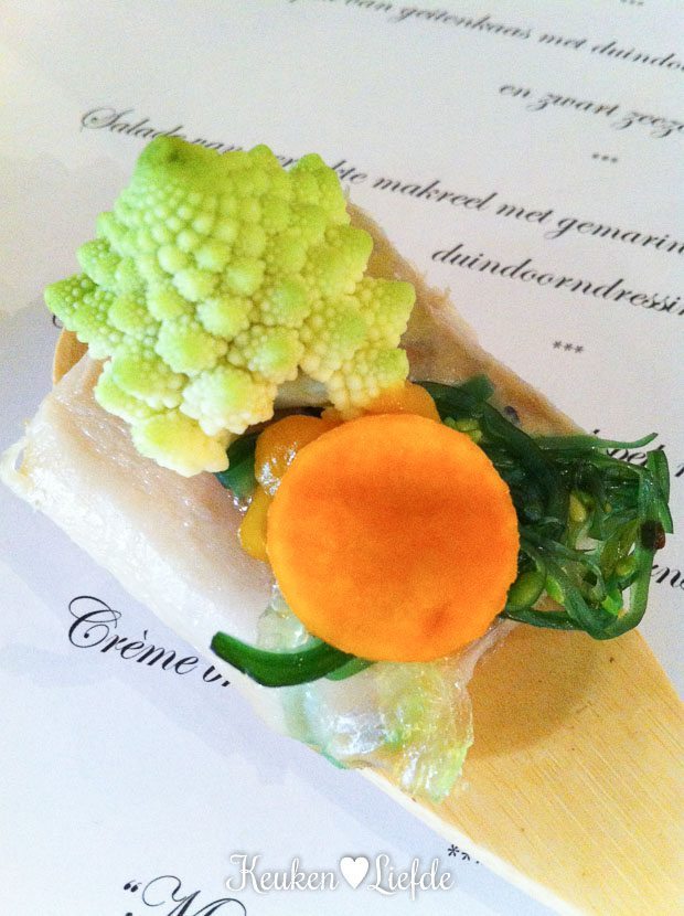 - Gerookte makreel met romanesko, pompoen en duindoorndressing