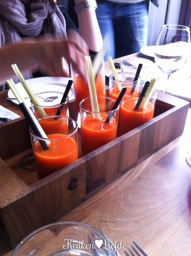 Door mijn gretigheid – lees: geen restjes achterlaten, ofwel goede opvoeding – kon ik helaas maar vier van de zes amuses op de foto opeten …