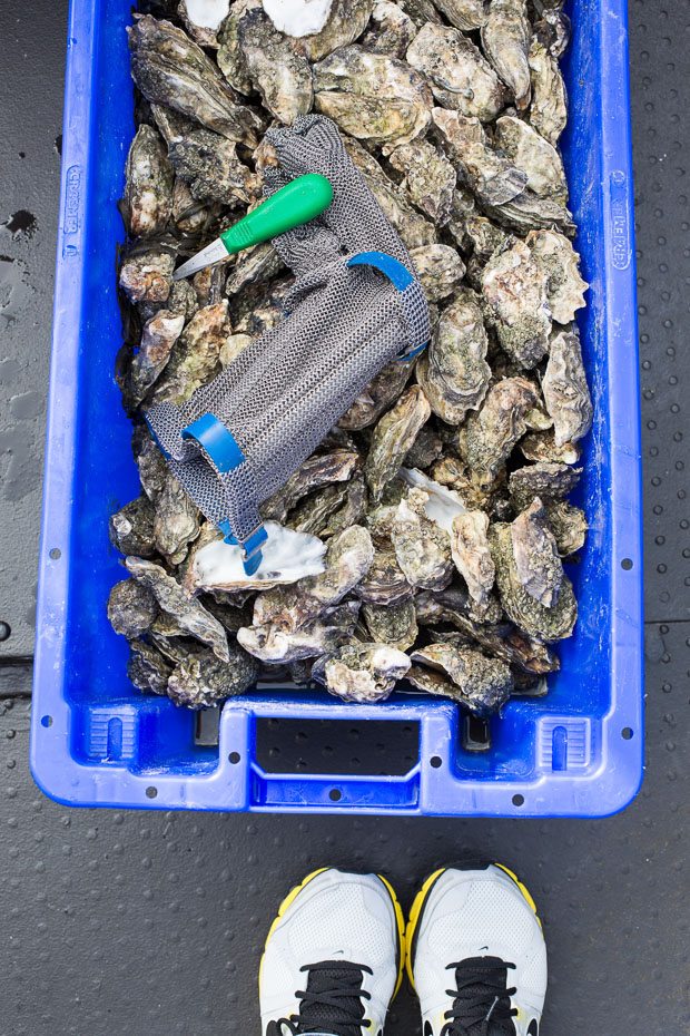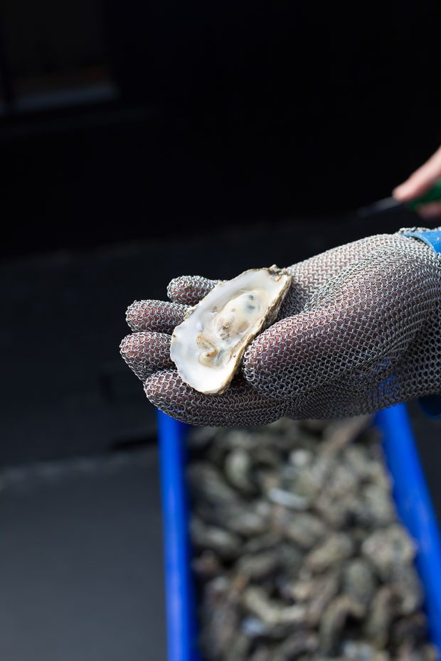 Voor onze neus staat een grote bak kraakverse creuses, oftewel oesters, klaar om geproefd te worden.