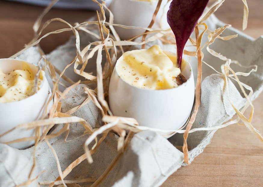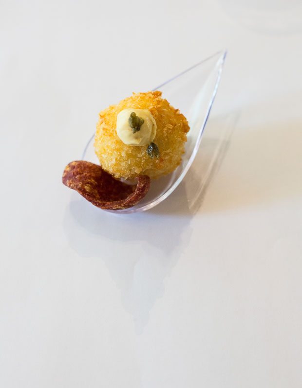 - Bitterbal van pastinaak met duindoornmosterd en gebakken kappertjes