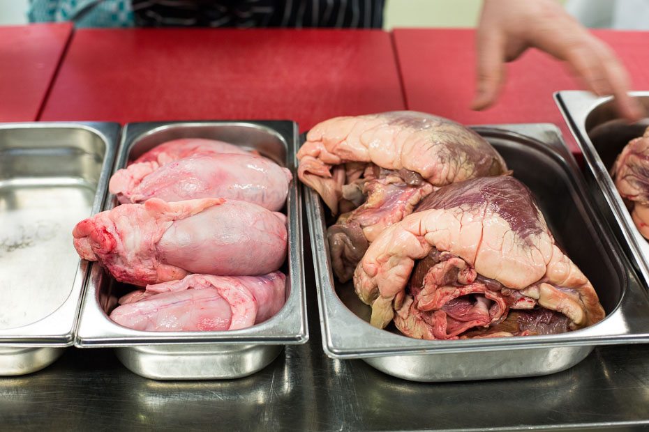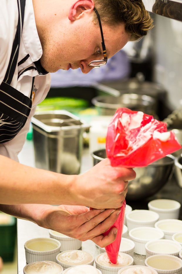 Het menu dat we bereiden is er een met – ik kan het ook niet helpen – ballen: stierenballen en runderhart. Slik. Maar gelukkig ook oesters, (on)kruiden van wildplukker John en suikerbroodsouffle. Jiiiiihaaaaah!