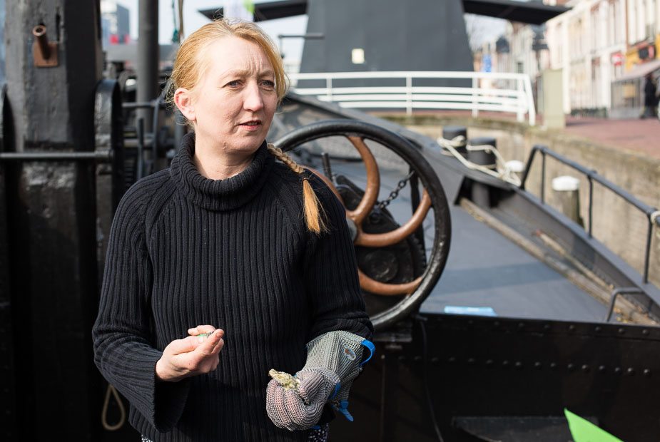 Bij de Willemskade aangekomen, stappen we op de boot bij Barbara Geertsema van Goede Vissers.