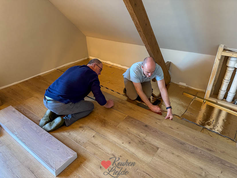 Johan zijn vader kwam twee dagen helpen om de vloer te leggen in de slaapkamer van Ella-Marie. Superfijn want het was een beste klus.