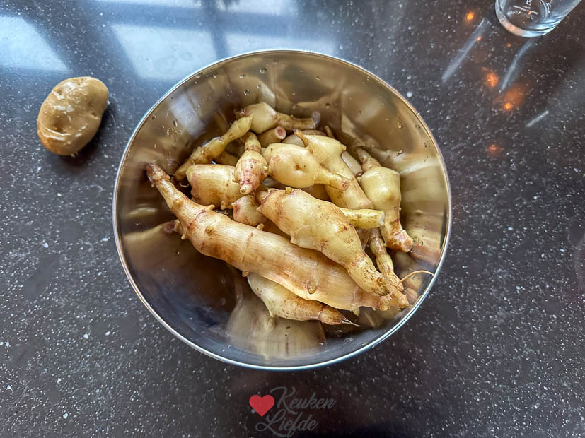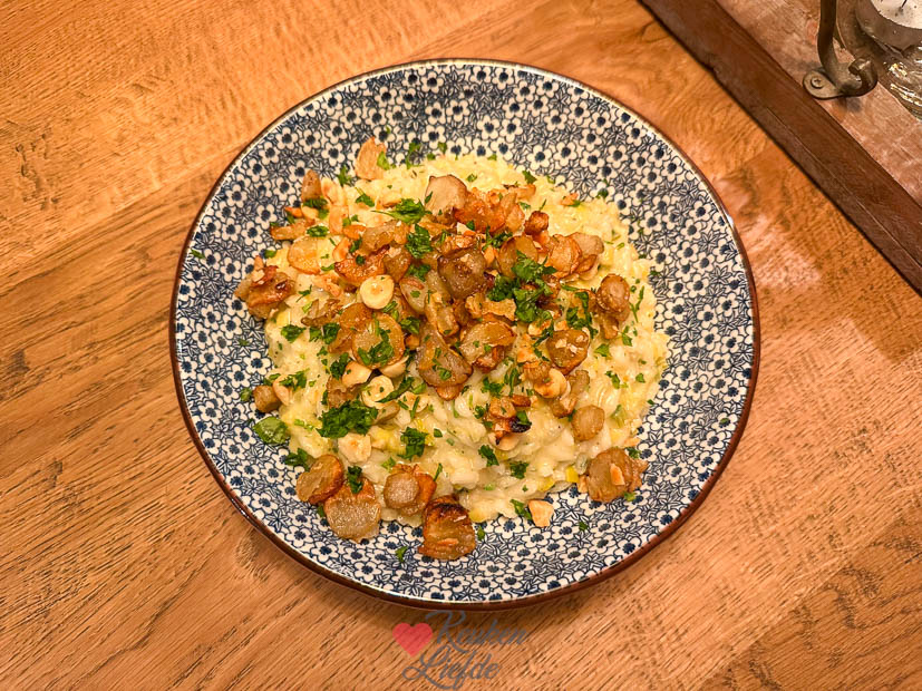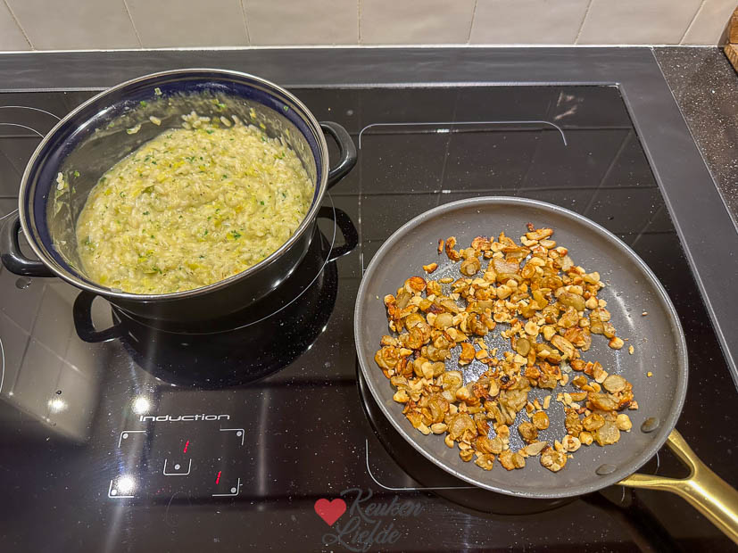 In de moestuin hebben wij aardperen staan en in de winter is het de tijd om de knolletjes te oogsten. Ik verheug me er het hele jaar op want gebakken aardpeer met hazelnoten is goddelijk lekker. Wij eten er prei-risotto met gruyère en citroen bij. Echt, je weet niet wat je proeft. Dit recept.