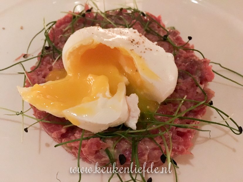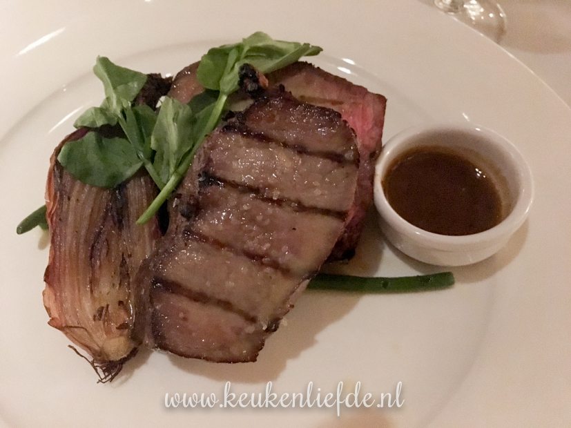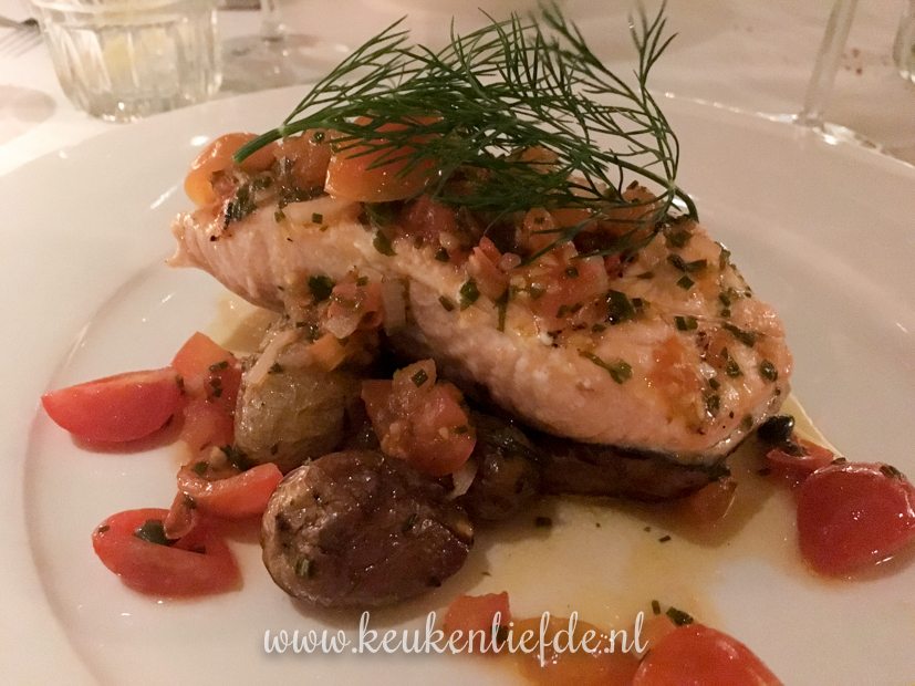 Mijn eten was lekker (steak tartare en gegrilde zalm) maar niet iedereen was blij. De entrecote van Johan leek meer op een dun, opgewarmd bieflapje en de risotto (van vele anderen) was in plaats van romig en vloeibaar gebakken, droge rijst. Jammer.