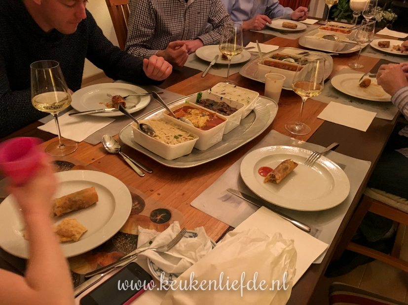 ’s Avonds hebben we een etentje bij mijn ouders thuis. Mijn moeder maakt haar befaamde vishapjes (speciaal voor Ella-Marie salamirolletjes met Boursin) en daarna wordt er een rijsttafel gehaald bij Vietnamees restaurant An-Nam in Tiel (onze afhaalfavoriet!). Gezelligheid!