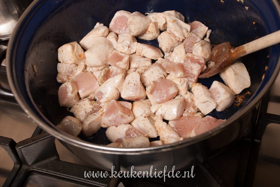 - 600 g kipfilet, in blokjes gesneden