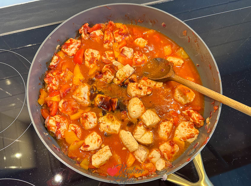 - 500 g kipfilet, in blokjes gesneden (kipdijfilet kan ook)