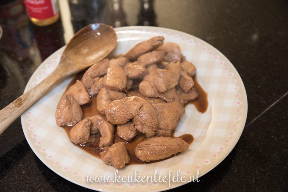Hoi Fabiola, ik bedoel echt 9 el sojasaus. De eerste 5 el gebruik je om de kip in te marineren. De overige 4 el gebruik je om de saus te maken. Als je bang bent dat het te zout is, kun je in plaats van 4 el ook minder toevoegen. Gewoon proeven tijdens het koken, dan kun je altijd nog een extra eetlepel toevoegen.