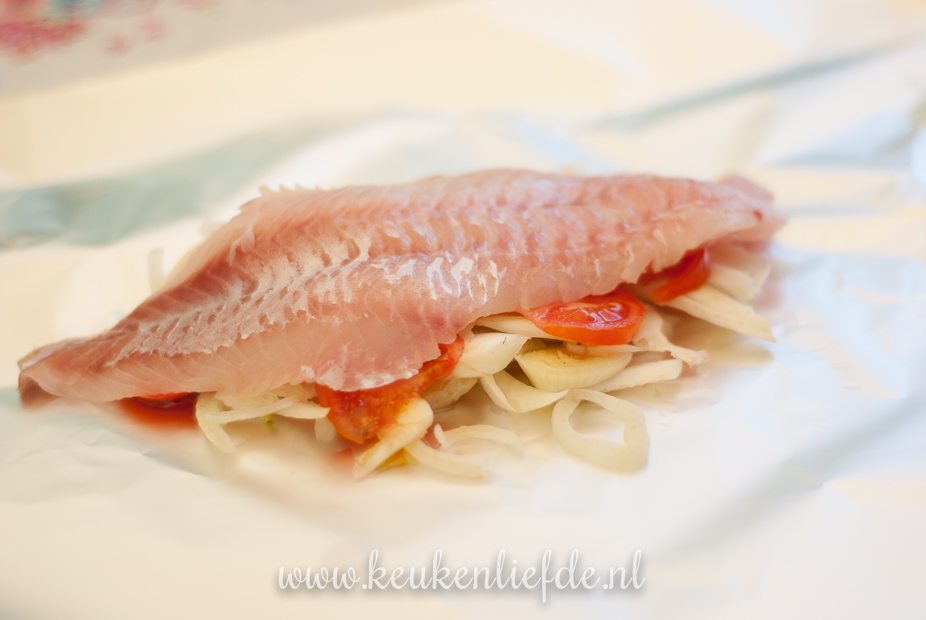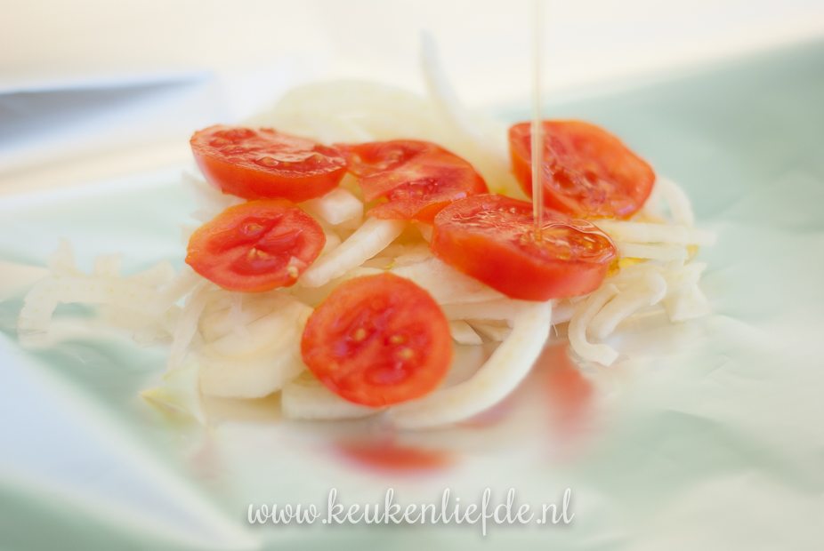 Eenvoudig en snel te maken vispakketje met frisse venkel en tomaat voor op de barbecue. Lekker met gekookte of gebakken krielaardappels!