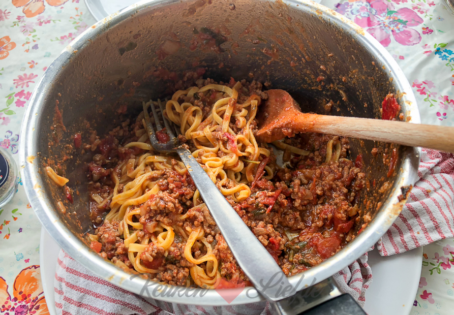 - Serveer met gekookte verse pasta en maak af met geraspte Parmezaan.