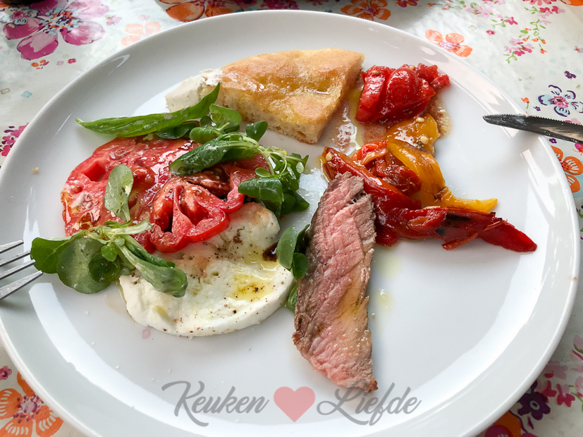- Een Italiaans smulbordje: salade caprese, Bistecca Fiorentina, foccaccia en gegrilde paprika