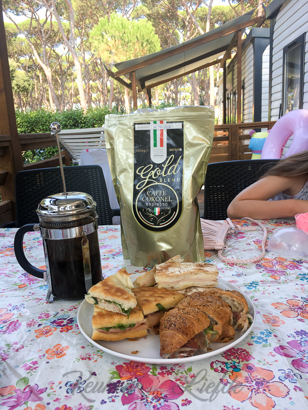 Koffie zetten op de camping kan op verschillende manieren. In onze Avant-caravan stond een koffiezetapparaat en een cafetière die je beide kunt gebruiken om filterkoffie te zetten. Wij hadden onze eigen zak koffiebonen meegenomen die we fijnmaalden in onze grinder. Iets meer werk maar versgemalen koffiebonen hebben gewoon meer smaak dan filterkoffie.