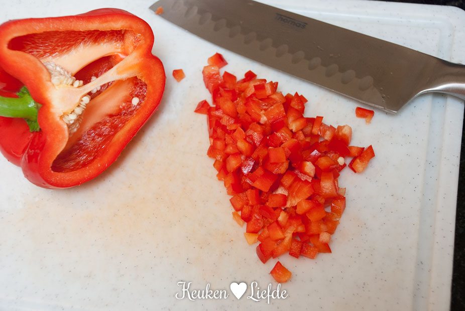 - 1/2 rode paprika, in kleine blokjes gesneden