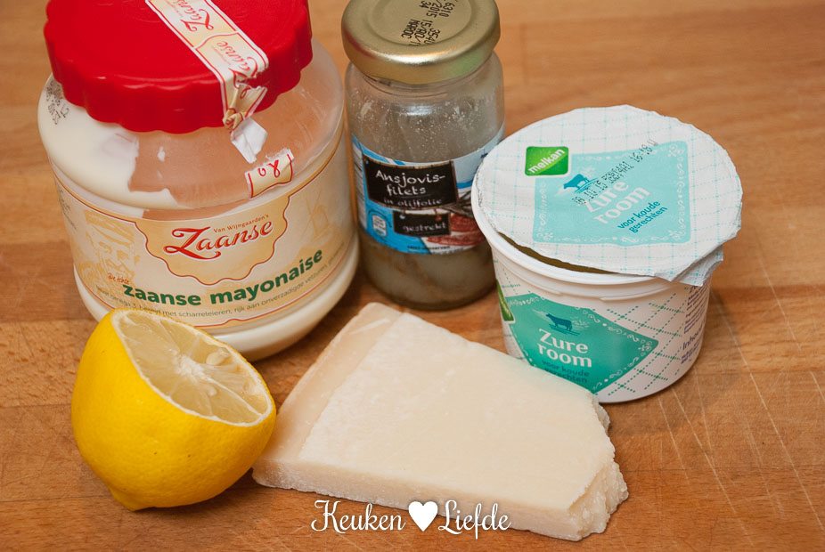 Maar, de saladedressing is hier het geheime ingrediënt! Die gebruik ik voor bijna alle salades. De ansjovis is namelijk een geweldige smaakmaker. Laat je er niet door afschrikken, want dat visje prak je gewoon lekker met een vork fijn zodat je er niets meer van terugvindt in de salade. Behalve de smaak!