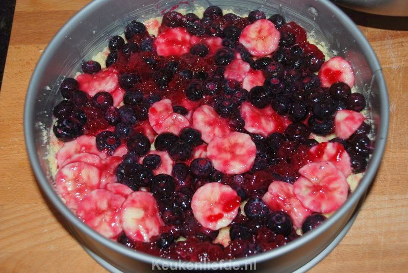 Ik heb de taart gemaakt met (diepvries)bosvruchten. Hij was heerlijk!