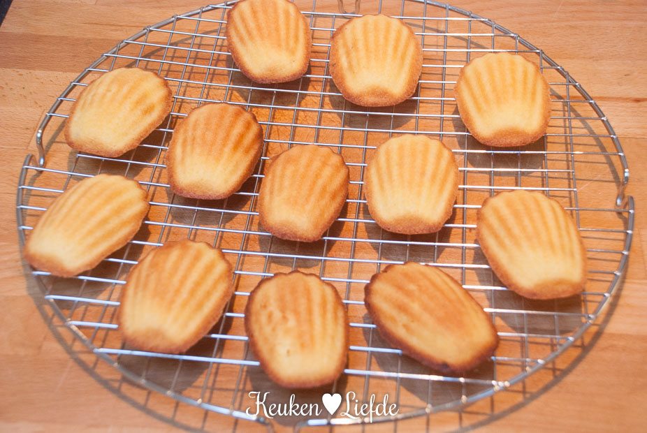 Je kunt de afgekoelde madeleines eventueel bestrijken met warme abrikozenjam voor een mooie glans en lekkere smaak, of dip de onderkant van de madeleines in gesmolten chocolade …