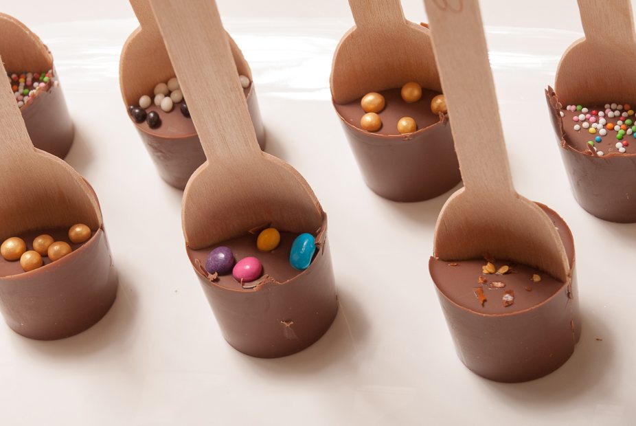 Verpakt in een transparant of gekleurd cellofaanfolie zijn deze chocoladelepels het perfecte cadeau om weg te geven.