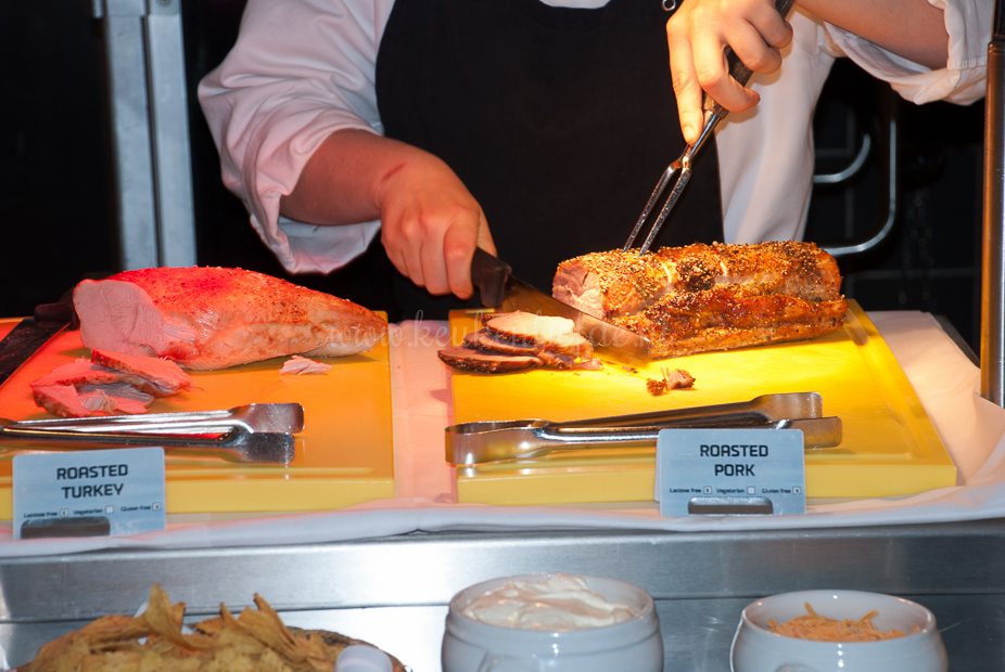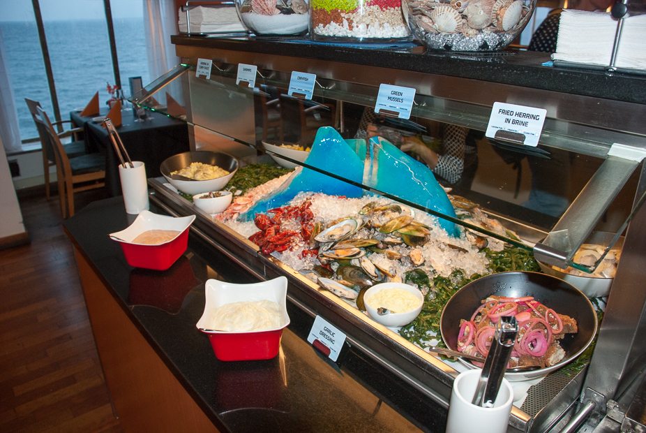 Naast de Blue Riband zijn er nog twee restaurants aan boord: het Explorers Steakhouse en het 7 Seas Buffetrestaurant. Laatstgenoemde heeft een superuitgebreid dinnerbuffet. Hier kijk je je ogen uit! Er is bovendien een waanzinnig kinderbuffet waar ik mijn dochter gegarandeerd nooit meer vandaan had gekregen.