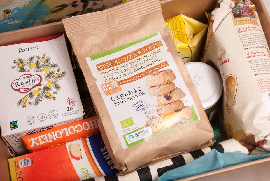 Zo vind ik pyramide rooibostheezakjes (ik drink al vijftien jaar geen andere thee) van Tea of Life én roomboter (ROOMBOTER) speltkoekjes met muesli! Woah.
