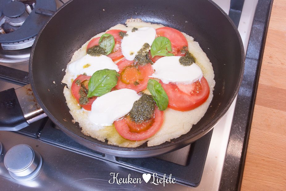 Omdat ik al heel de week last heb van Italiaanse (zomer)kriebels, bakte ik voor de gelegenheid een pannenkoek caprese. Weer eens wat anders dan een pannenkoek met stroop en poedersuiker – en zeker zo lekker!