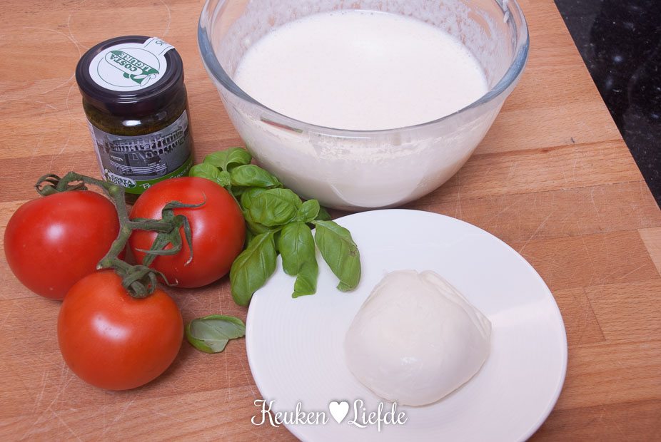 - 1 bol mozzarella, in plakjes gesneden