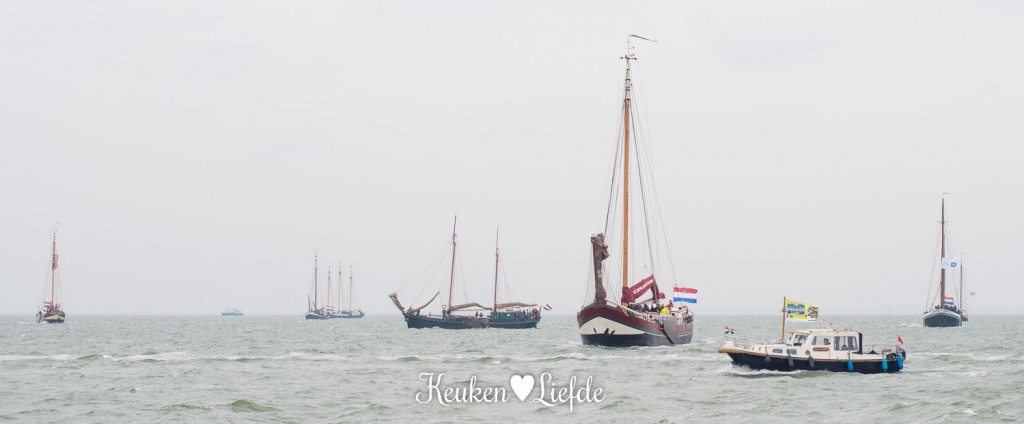 Met de gehele vloot varen we het havenkanaal uit op weg naar de Oosterschelde waar vissersboot MS3 van kreeftenvisser Gerrie van den Hoek ons opwacht.