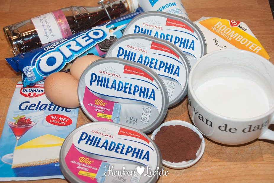 Nu de thermometer langzaamaan verder stijgt, kan een ongebakken cheesecake met vers zomerfruit natuurlijk niet uitblijven. Deze hemelse verrukking is luchtig, romig en fris; perfect dus voor een mooie zomerse dag. Ook nu heb ik Oreo-koekjes (ik ben er nu eenmaal dol op!) voor de bodem gebruikt, maar mariabiscuits of andere koekjes die je lekker vindt kan ook; je kunt dan tevens de cacaopoeder achterwege laten.