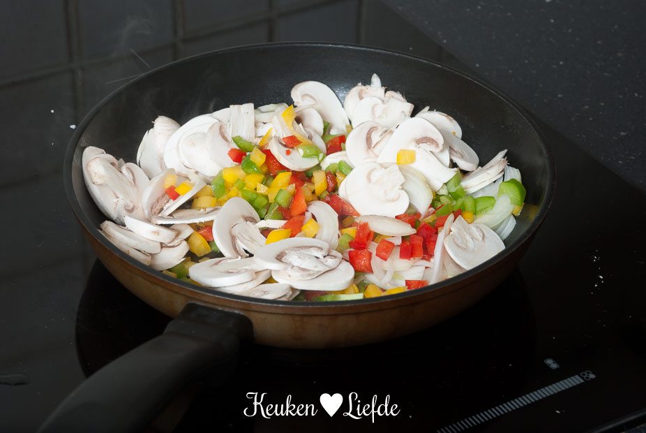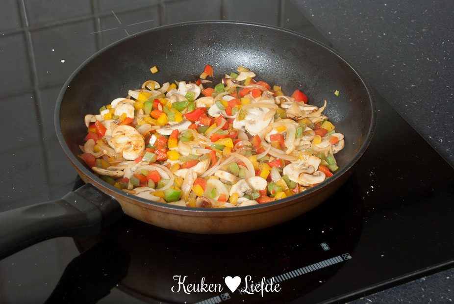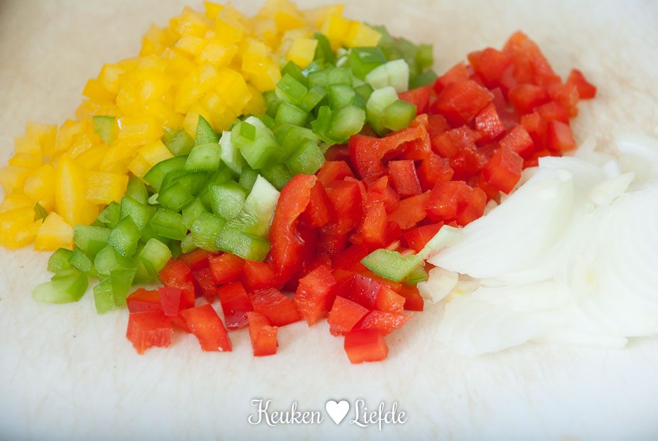 - 1/2 rode, gele en groene paprika