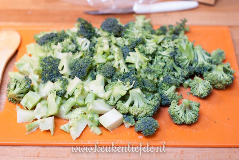- 1 broccoli, in kleine roosjes gesneden, stronk geschild en in plakjes