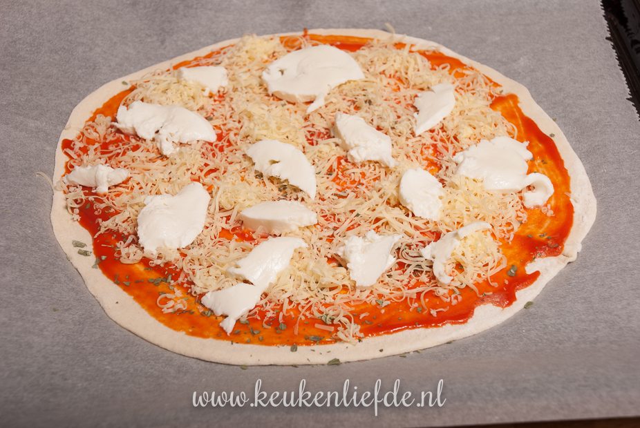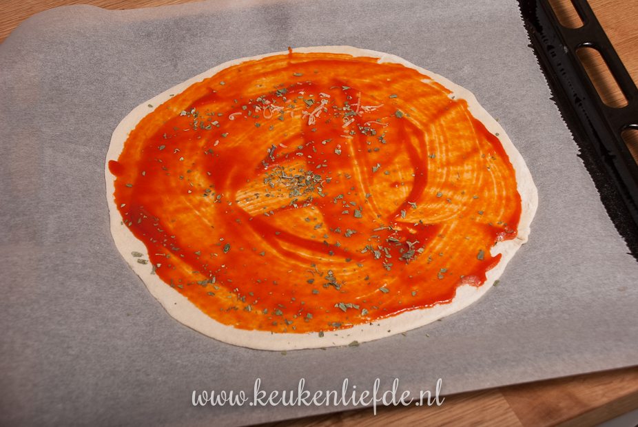 - 2 bolletjes zelfgemaakt pizzadeeg à 200 g, of kant-en-klaar pizzadeeg