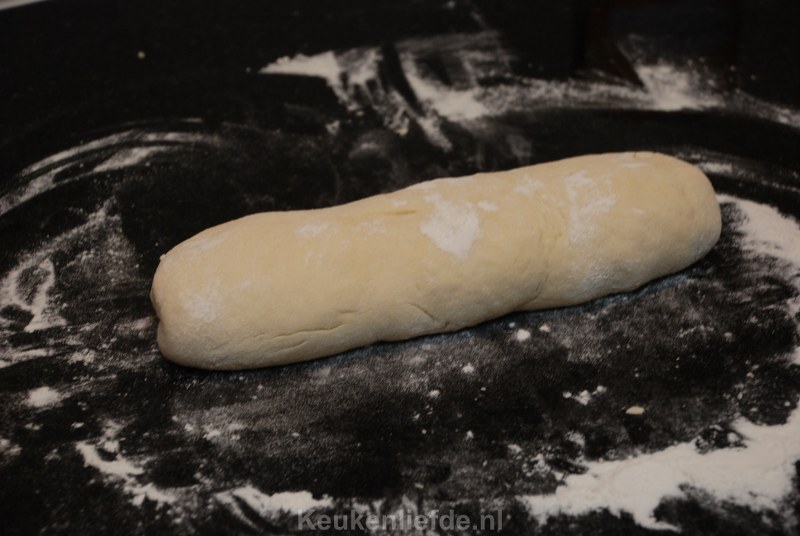Vorm op een met bloem bestoven ondergrond een rol van het deeg.