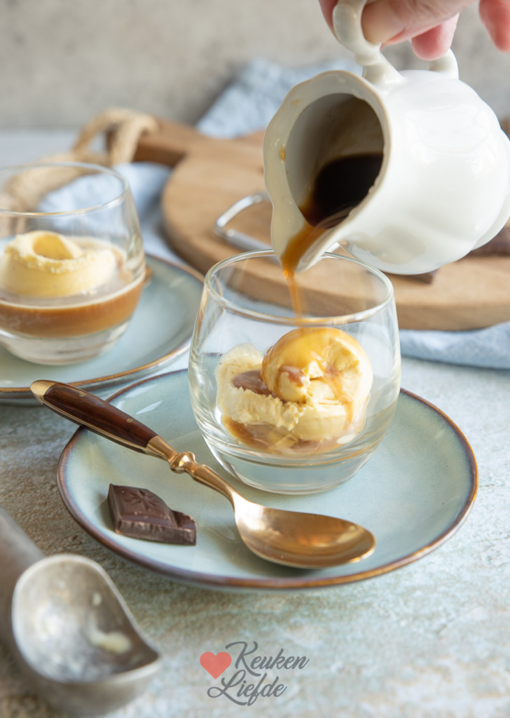 Affogato. Een Italiaans dessert dat uitblinkt in eenvoud. Affogato betekent ‘verdronken’. Een bol goede vanilleroomijs wordt overgoten met hete espresso. Het ijs verdrinkt dus letterlijk in de espresso. Een perfect dessert om te serveren na een lekker (Italiaans) diner. Ik wed dat iedereen hier nog wel een gaatje voor kan vinden.