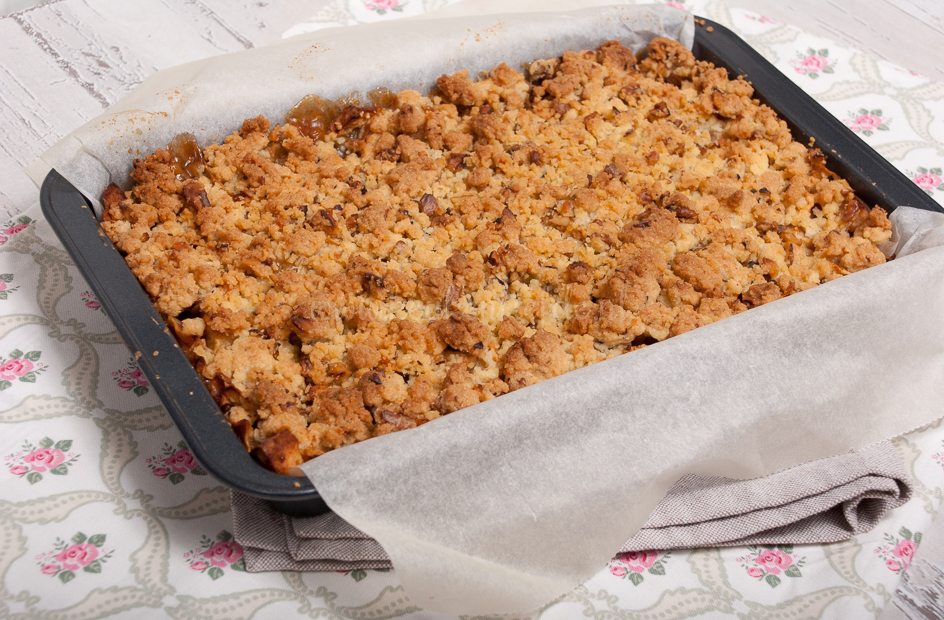 Heerlijk recept wat ik voor onze housewarming maakte en bij iedereen in de smaak viel! Alleen ik had het recept x2 gedaan en dus 3 kg appels geschild, maar toen ik een bakblik volledig had gevuld, bleef ik nog met een enorme saladeschaal appelvulling zitten! Dus nog een keer de appel kruimel gemaakt. Ik heb dus voor 2 recepten 2x de hoeveelheid deeg gedaan met die 3 kg appels. Dus als je de helft van de appelvulling aanhoudt per recept, mom je prima uit. Wel heb ik er veel meer rozijnen doorgedaan, want 4 eetlepels op zo’n enorme hoeveelheid appel, dan heb je niet in elk stukje rozijnen.