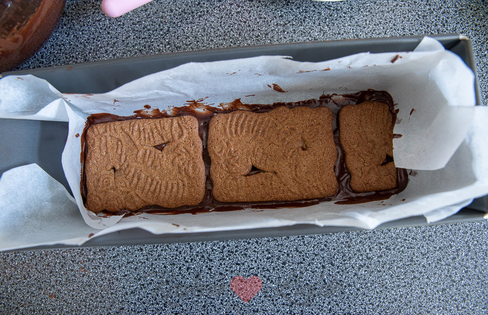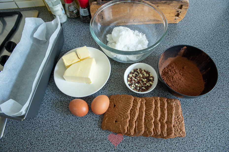 Normaal maak ik hem met biscuitjes, boter, basterdsuiker, scheutje koffie en cacoa.