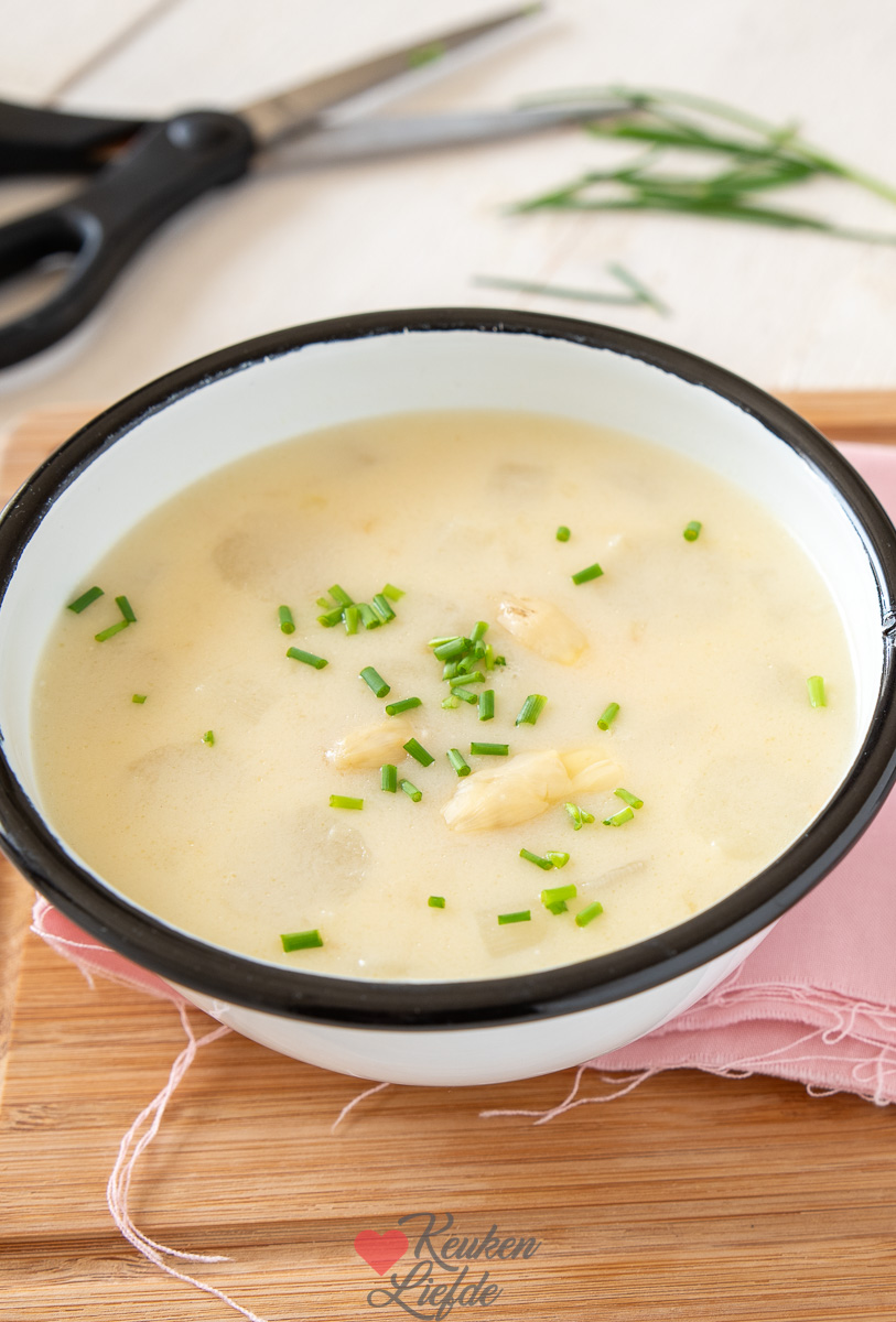 Het eerste aspergerecept waar ik dit kraakverse aspergeseizoen mee aftrap is deze asperge-crèmesoep met bieslook, gemaakt van verse asperges. Heel simpel om te maken en lekker romig en vol van smaak.