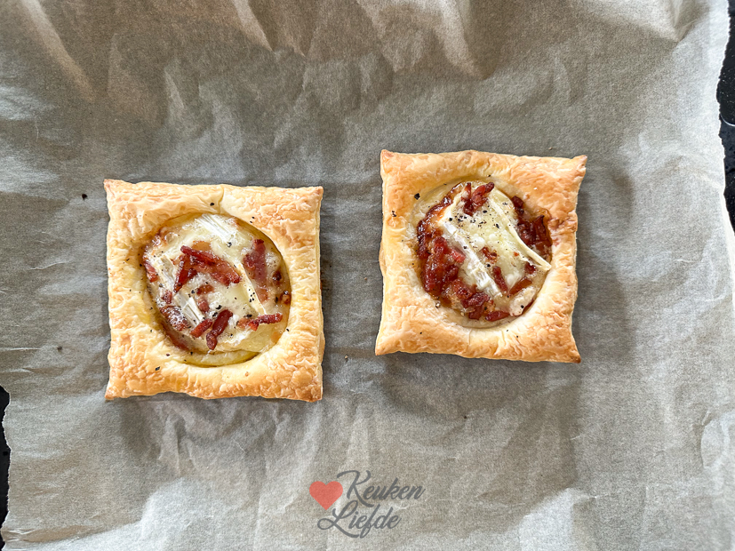 - Bestrijk het bladerdeeg met ei en bak circa 11 minuten in het midden van de oven, of tot ze goudbruin zijn.