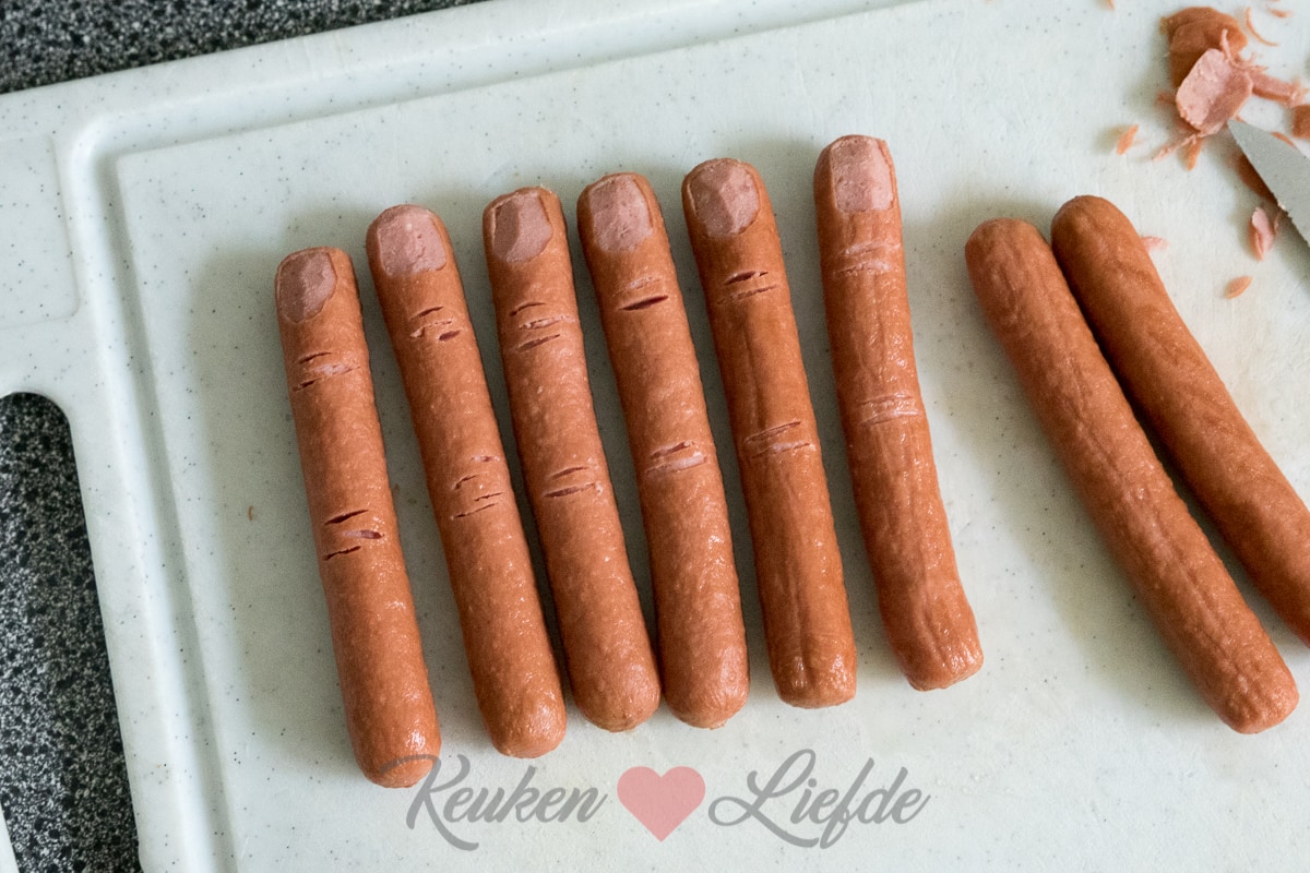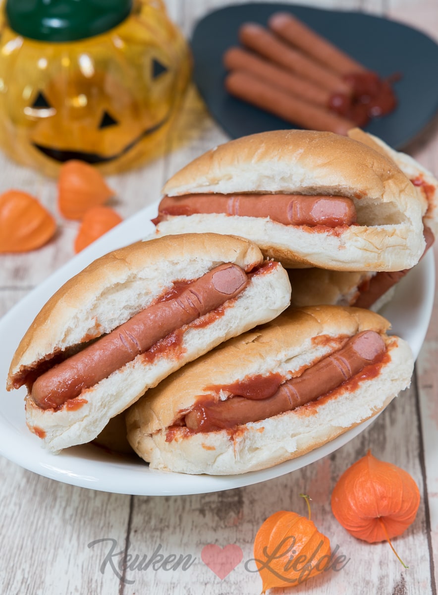 Durf jij je tanden hierin te zetten? Speciaal voor deze spooky Halloween-dag maakte ik broodje hotdog met afgehakte vingers! Niet echt natuurlijk. Ha, stel je voor! Het bewerken van de worstjes is even een werkje, maar dan heb je ook wat. Zeg nou zelf, ze lijken toch net echt! Heerlijk met een kommetje pompoensoep erbij.