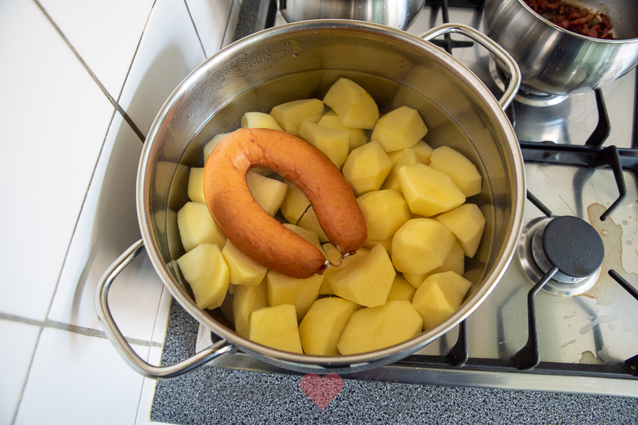 - Optioneel, rookworst om erbij te serveren